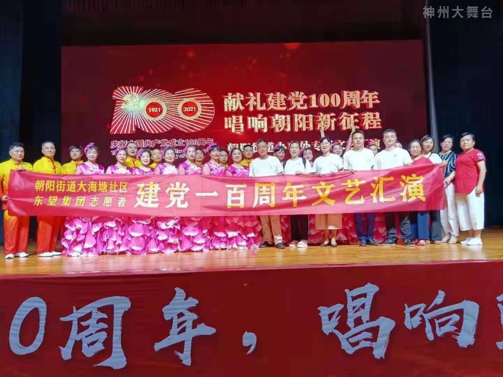 不忘初心,牢记使命。为庆祝建党百年华诞,东望集团员工志愿者们用红歌红舞颂党恩、赞盛世、传颂党的恩情,他们用红歌红舞表达对党的深情炽爱。2021年6月29日,东望集团湖南益阳课堂5名员工志愿者和东望集团益阳片区文艺宣传队21名员工志愿者,接受益阳大海塘社区领导邀请,参加湖南益阳市高新区朝阳街道献礼建党100周年大型文艺演出。