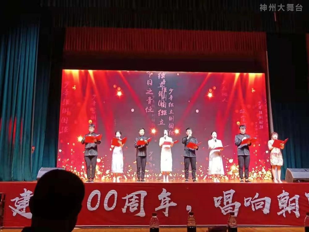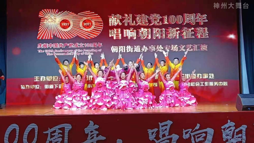 晚上19点30分,文艺晚会准时拉开了序幕。朝阳街道领导致辞后,宣布朝阳街道《献礼建党100周年》文艺演出正式开始。