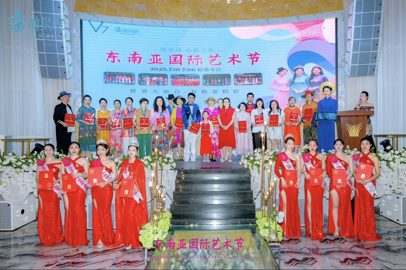 此外,来自东南亚的模特选手与越南芽庄民族舞蹈团也带来了精彩演出,奥黛美女T台走秀惊艳全场。最终,由世界大舞台(歌唱祖国)总导演何长明为模特冠军颁奖,艺术总监阿丽与外联部肖群分别为季军与亚军得主颁奖。