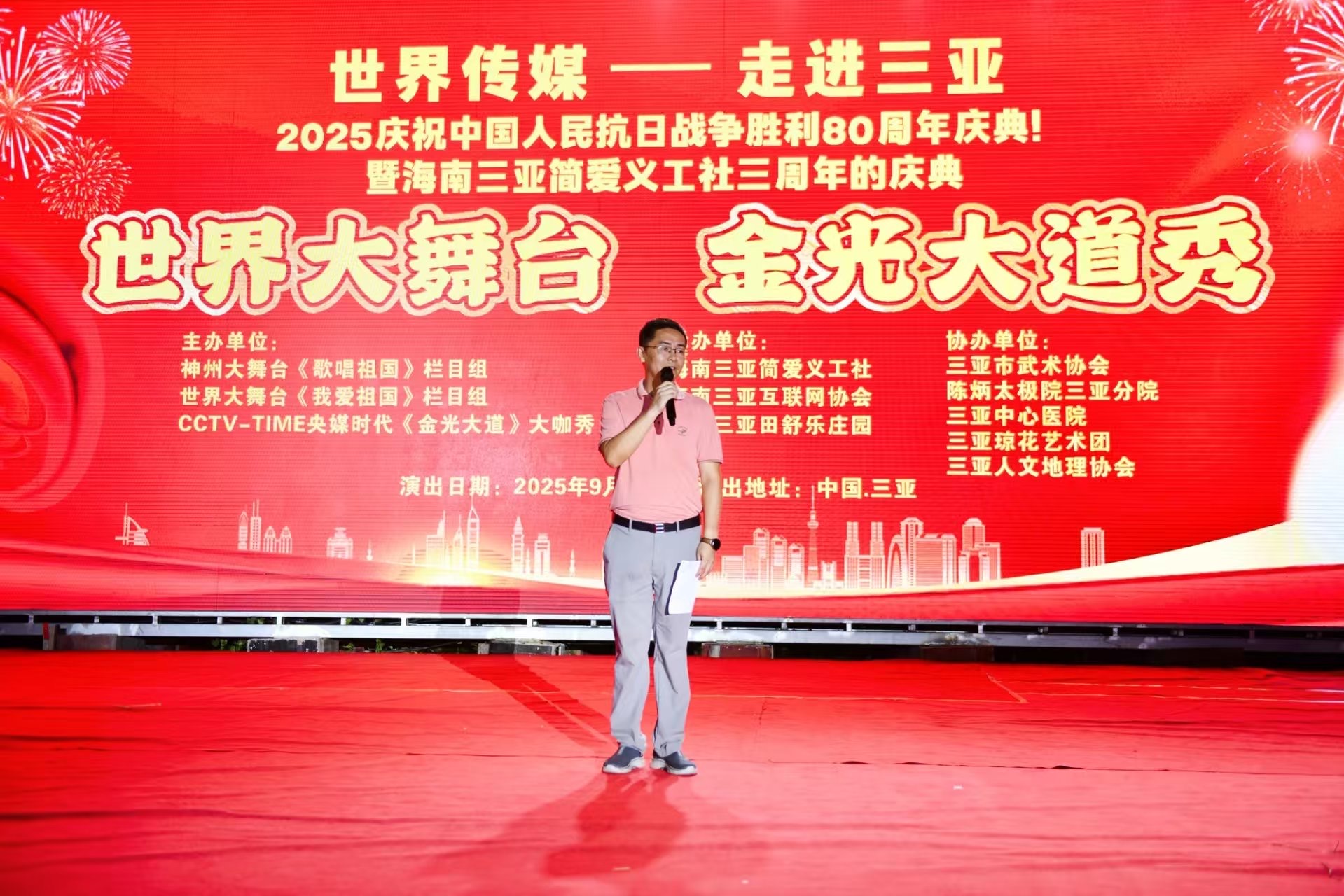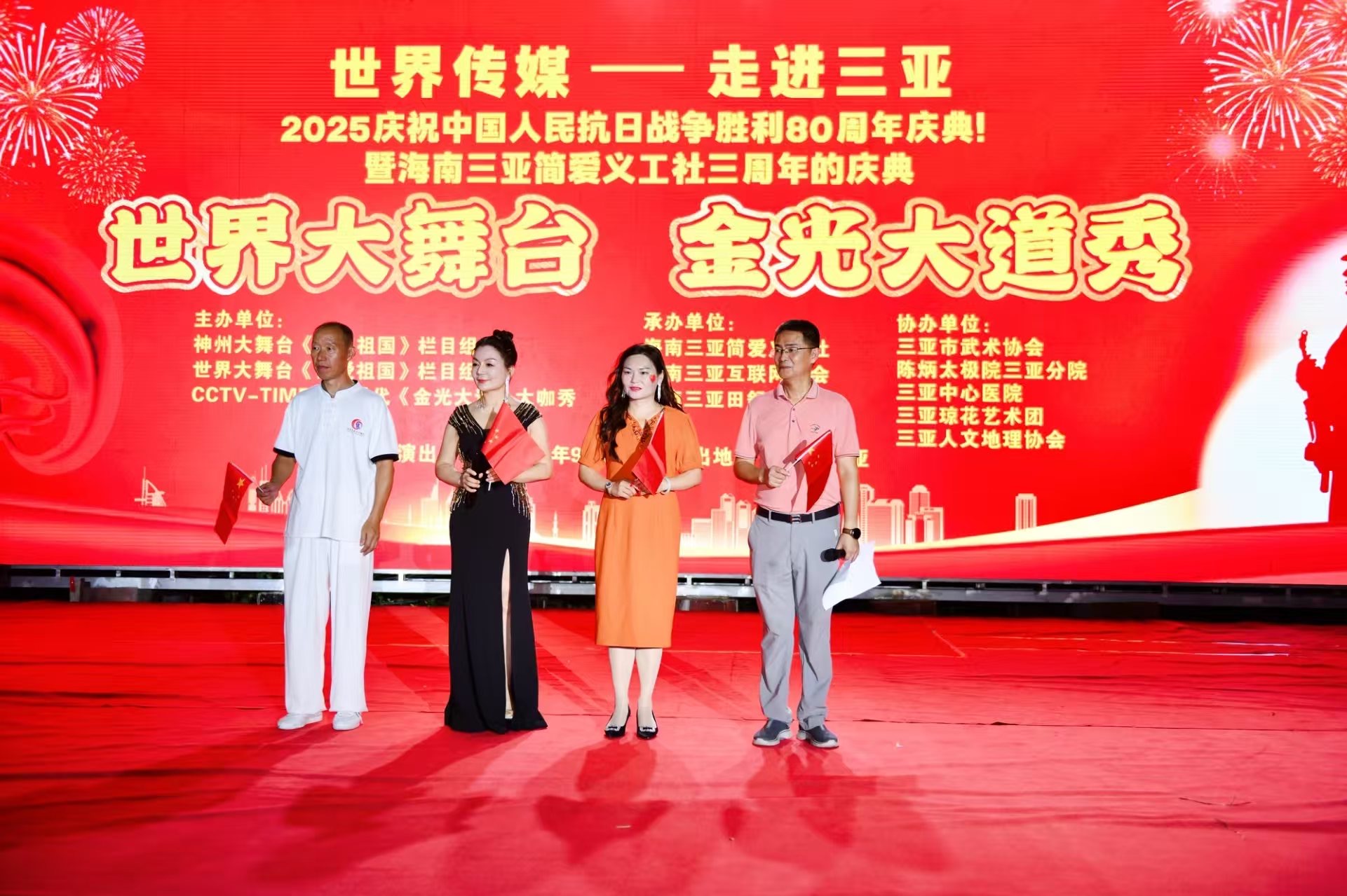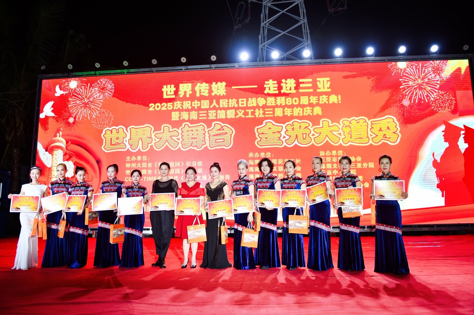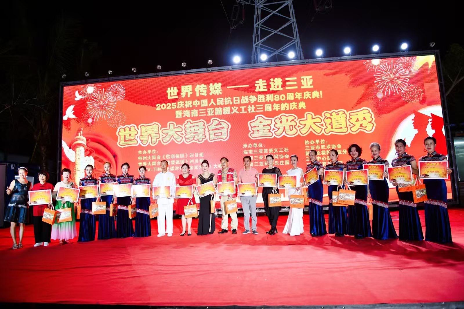 热烈祝贺世界传媒,神州大舞(歌唱祖国)组委会,世界大舞台(我爱祖国)组委会,央媒时代(金光大道)大咖秀,走进海南三亚,世界大舞台节目海选,2025庆祝中国人民抗日战争胜利暨世界反法西斯战争胜利80周年的庆典活动取得圆满成功!