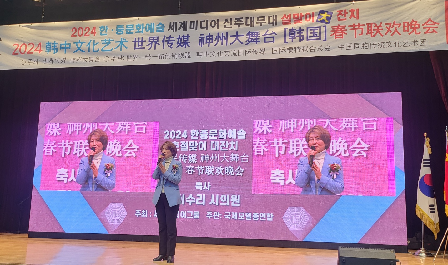 世界传媒【韩国】运营中心 报道:2024年2月4日,由韩中文化交流 国际传媒有限公司金恩植总裁 担任本届晚会总导演亲自执导,世界传媒 神州大舞台主办,世界一带一路供销联盟 韩中文化交流国际传媒有限公司 国际模特联合总会 世界传媒【韩国】运营中心 爱与奉献多文化协会 中国同胞传统文化艺术团 共同承办的世界传媒 神州大舞台 【韩国】春节联欢晚会在首尔市冠岳区演播厅隆重举行。