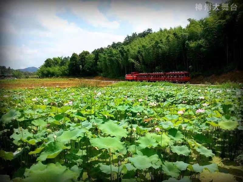 “呜呜呜”——伴着清脆的汽笛声,“阿鲁阿家”号观光小火车满载着游客缓缓开动。窄窄的铁轨伸向远方,深深浅浅的绿,在阳光下更加诗意和耀眼。小火车从中穿行而过,串起了绿意浓浓的灵芝农场、竹园农场、桃花农场、蔬菜农场、石斛农场……